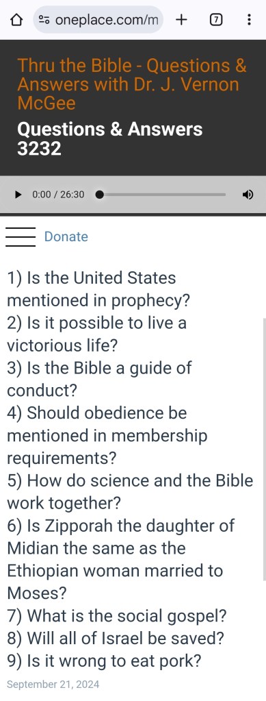 My favorite question today was #7, the second part, did Jesus come to preach a social gospel? I loved Mcgees answer, “He didn’t come to preach the gospel at all, He came to BE the Gospel, He is the Gospel!” The Good news is that He came to live as one of us and die and rise again the third day to pay the penalty for our sin. We CAN be forgiven!! That is VERY good news!!
